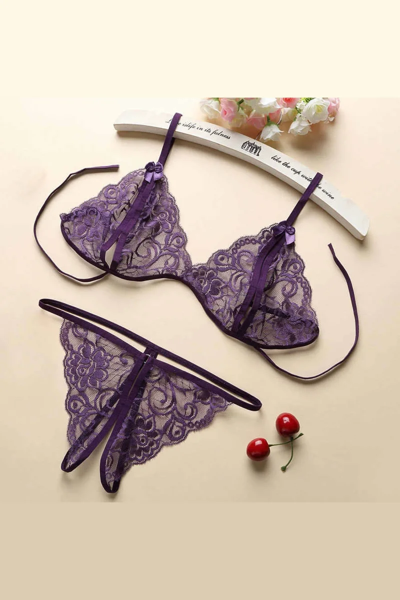 Kadın Mor Dantelli Sütyen Külot Takımı