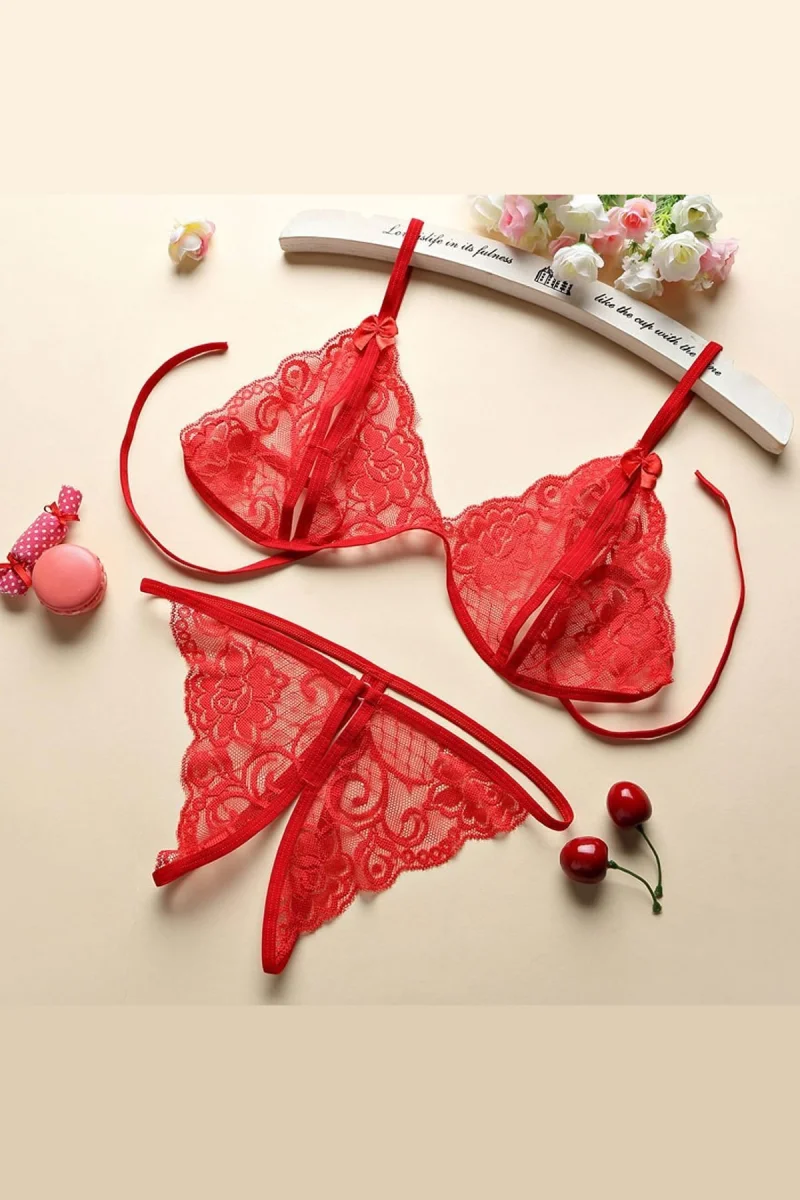 Kadın Kırmızı Dantelli Sütyen Külot Takımı