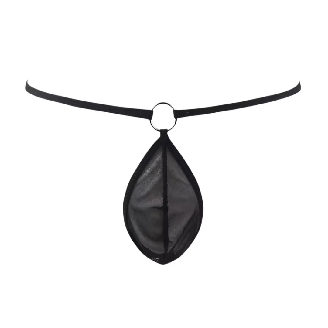 Fantezi Siyah Transparan Halkalı Tül Erkek String Seksi Erkek İç Çamaşırı