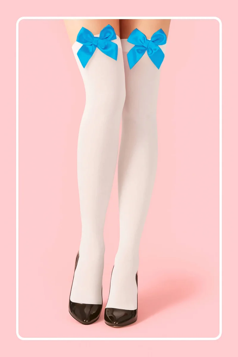 𝐀𝐋𝐄𝐗𝐃𝐑 𝐅𝐀𝐒𝐇𝐈𝐎𝐍 Mavi Fiyonklu Beyaz Jartiyer Çorabı