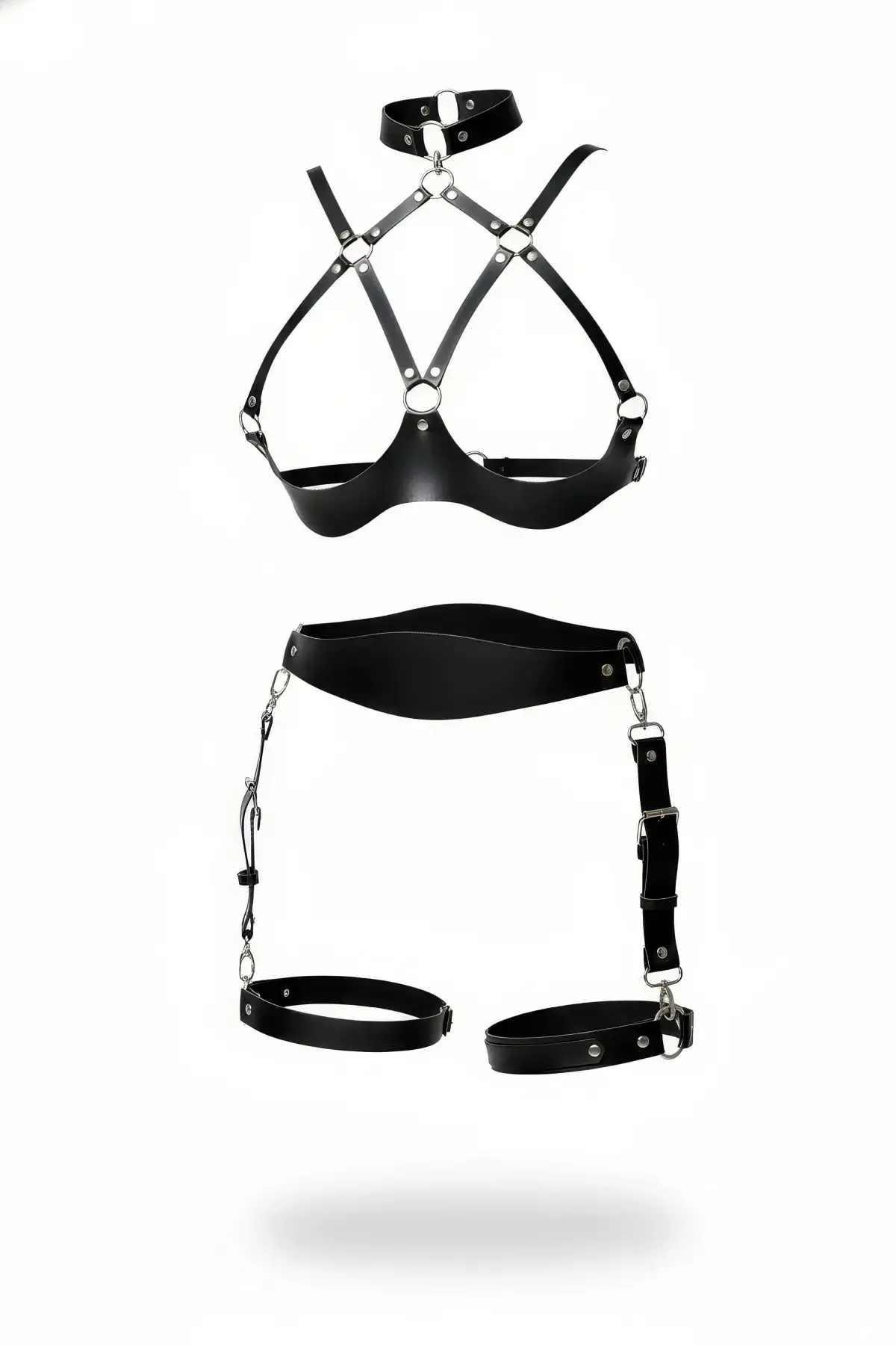 Siyah Harness Takım Ayarlanabilir Deri Vücut Aksesuarı - Brf1192