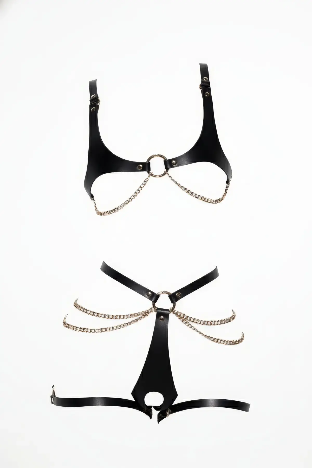 Siyah Harness Takım Zincir Detaylı Deri Vücut Aksesuarı - Brf1384