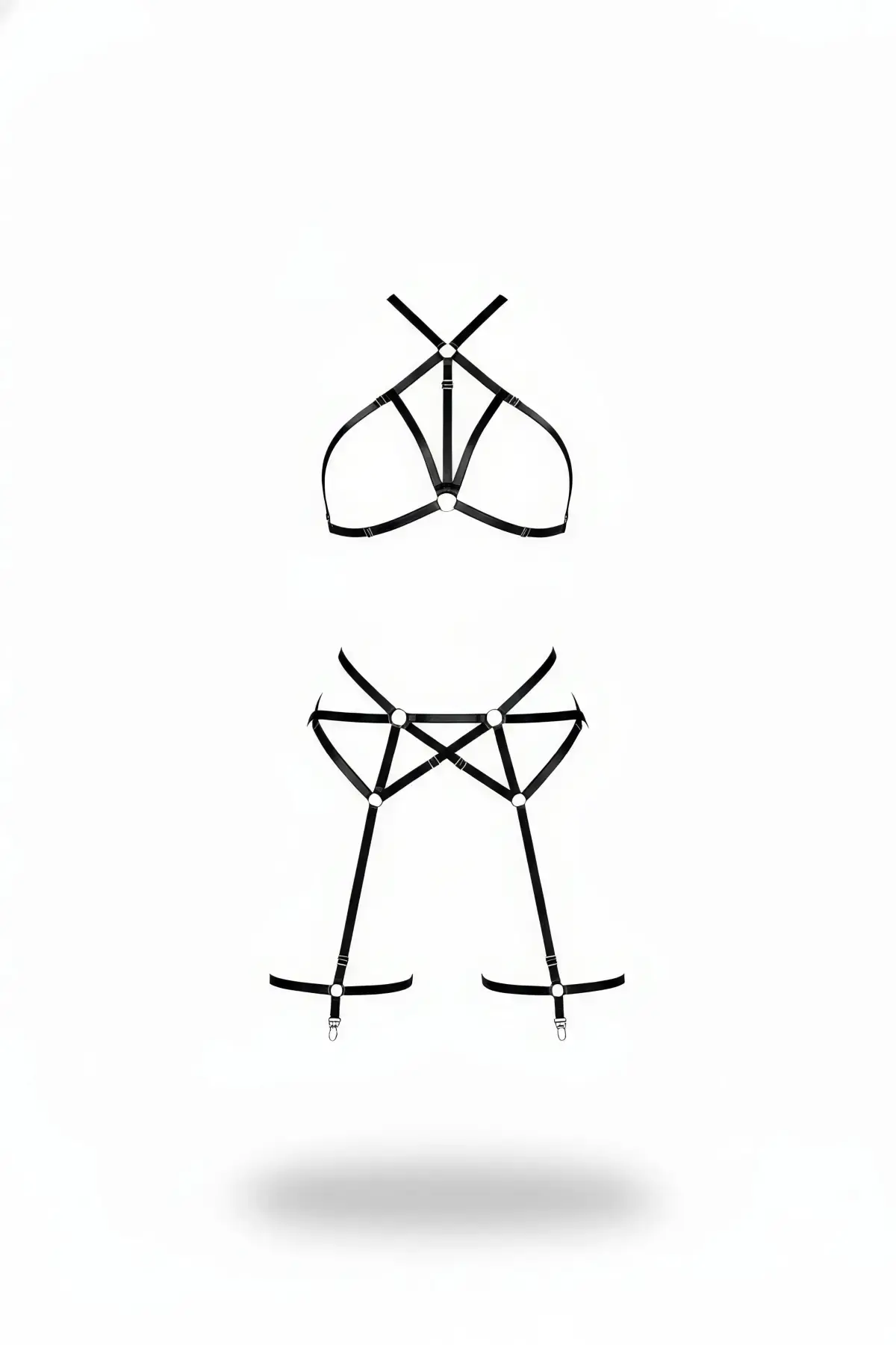 𝐀𝐋𝐄𝐗𝐃𝐑 𝐅𝐀𝐒𝐇𝐈𝐎𝐍 Siyah Harness Takım Deri Boyundan Bağlamalı Halka Detaylı - Brf161