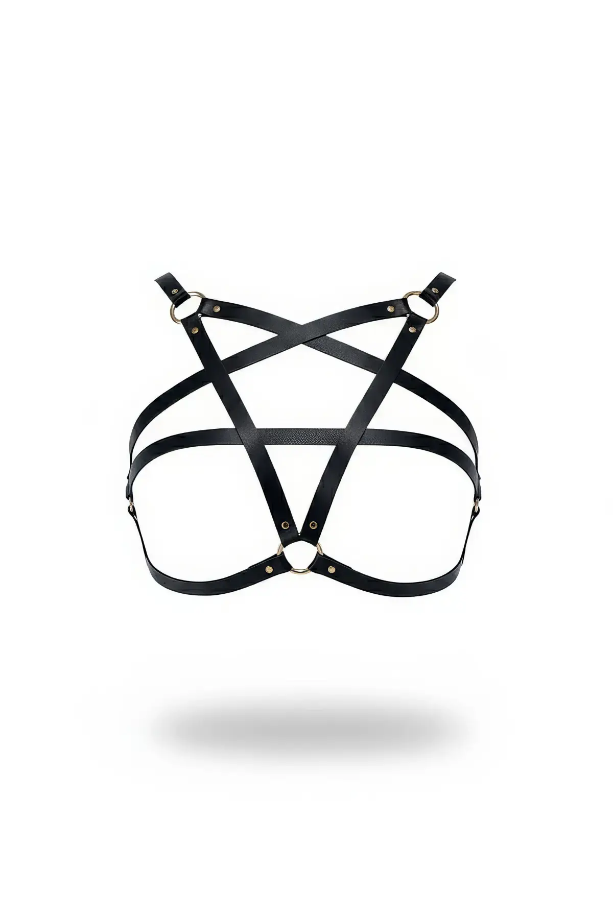 Siyah Göğüs Harness Yıldız Detaylı Suni Deri Vücut Aksesuarı - Brf167