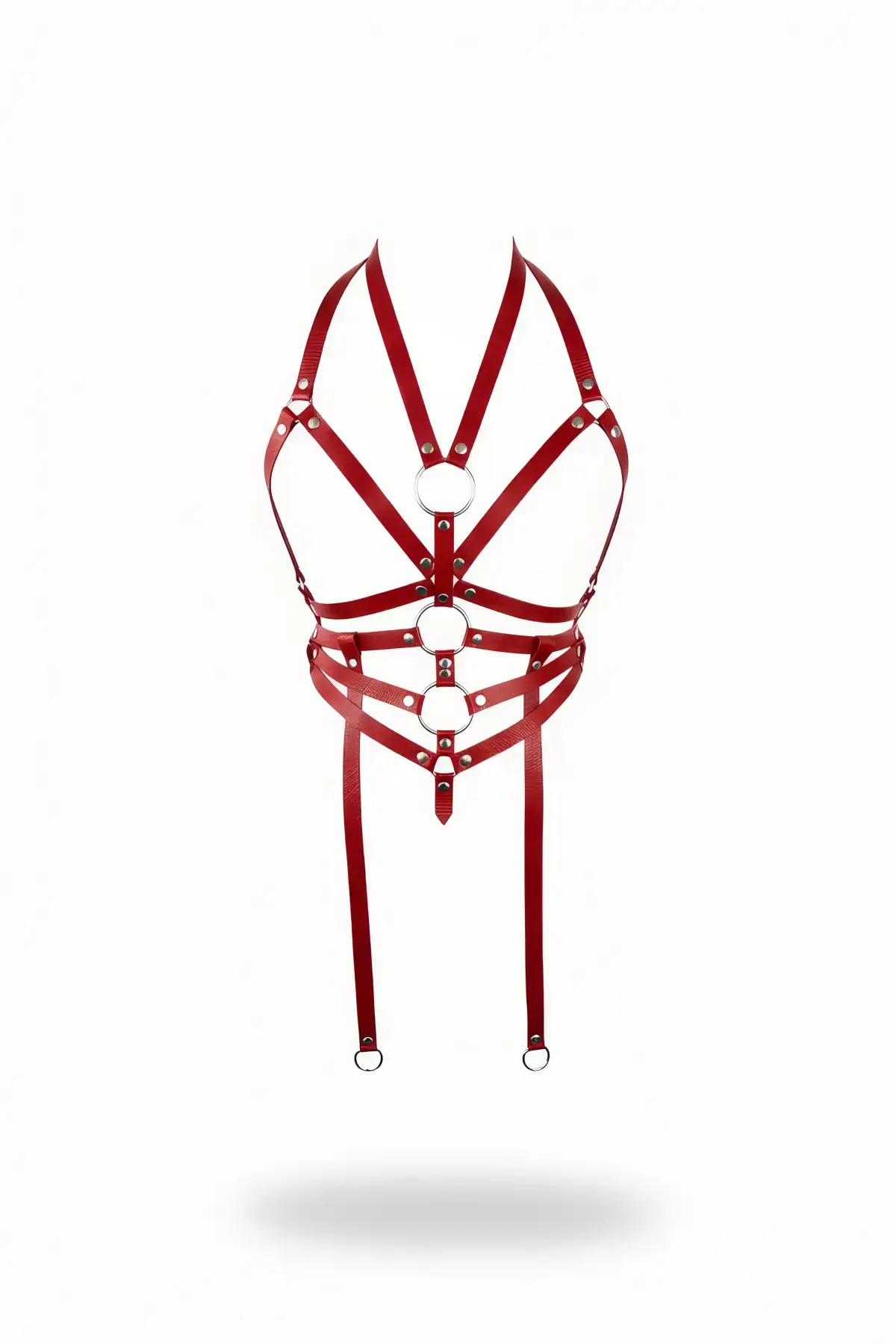 Kırmızı Göğüs Harness Deri Halka Detaylı Vücut Aksesuarı - Brf23